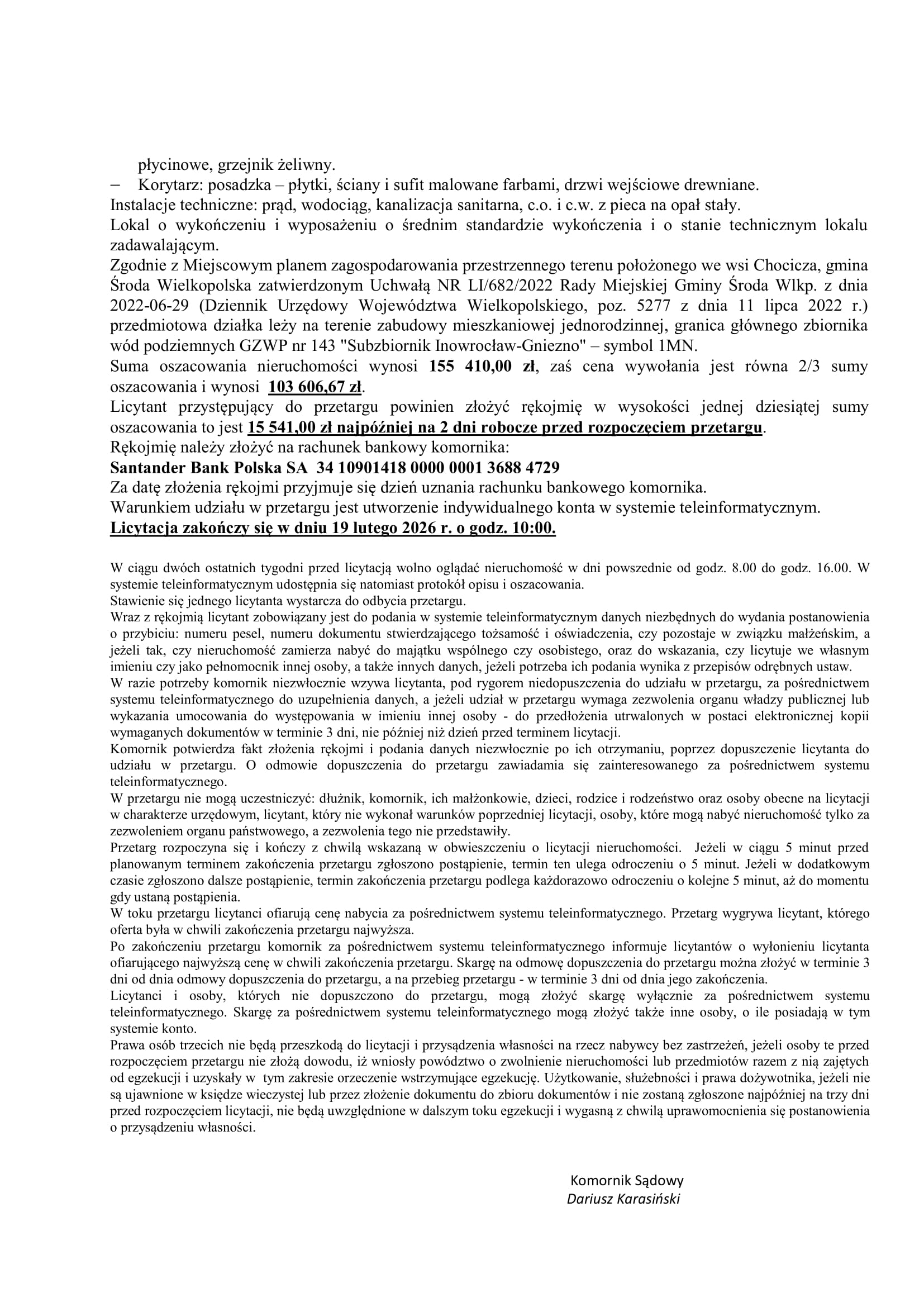 Lokal mieszkalny Chocicza (druga licytacja)